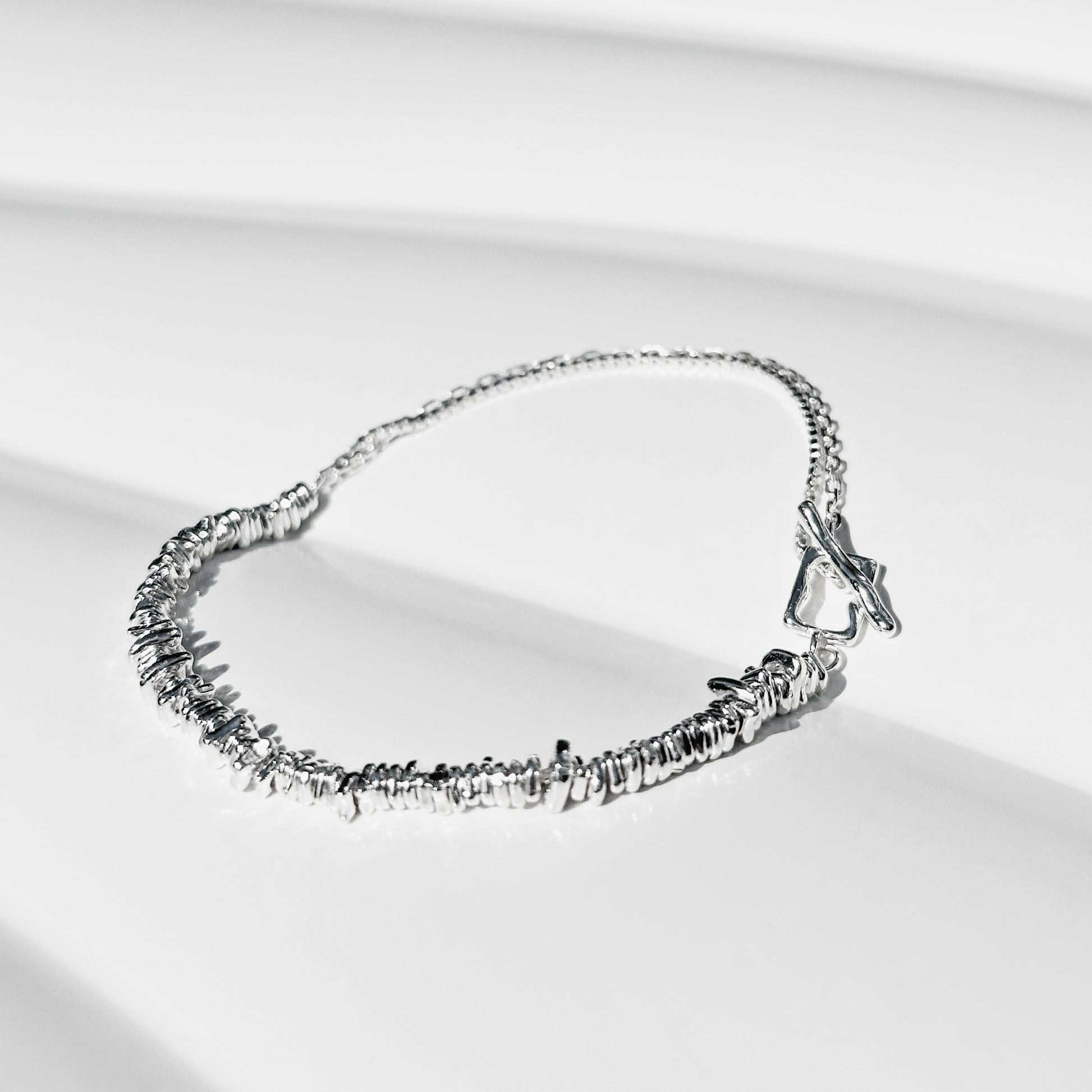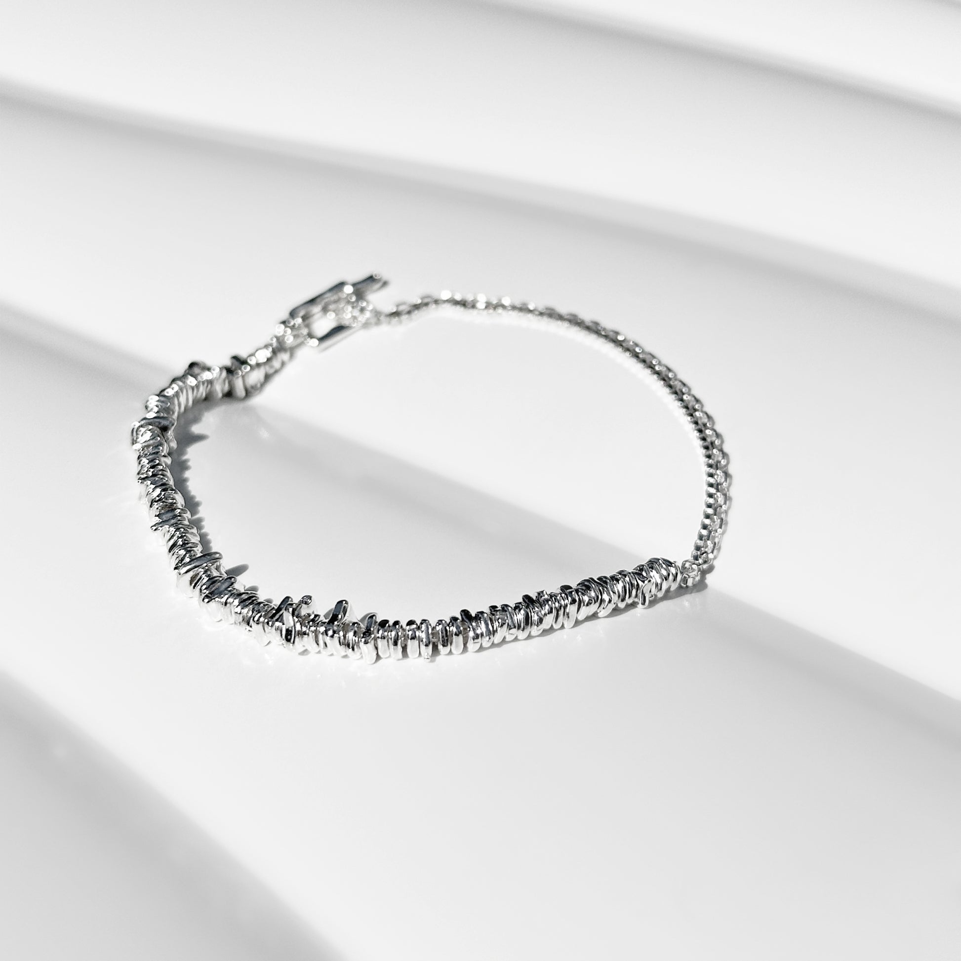 Delicate with a touch of edge, the Lyria Bracelet features a ripple-inspired design crafted in polished 925 silver. Its playful texture catches the light beautifully—perfect for adding modern charm to your everyday stack.